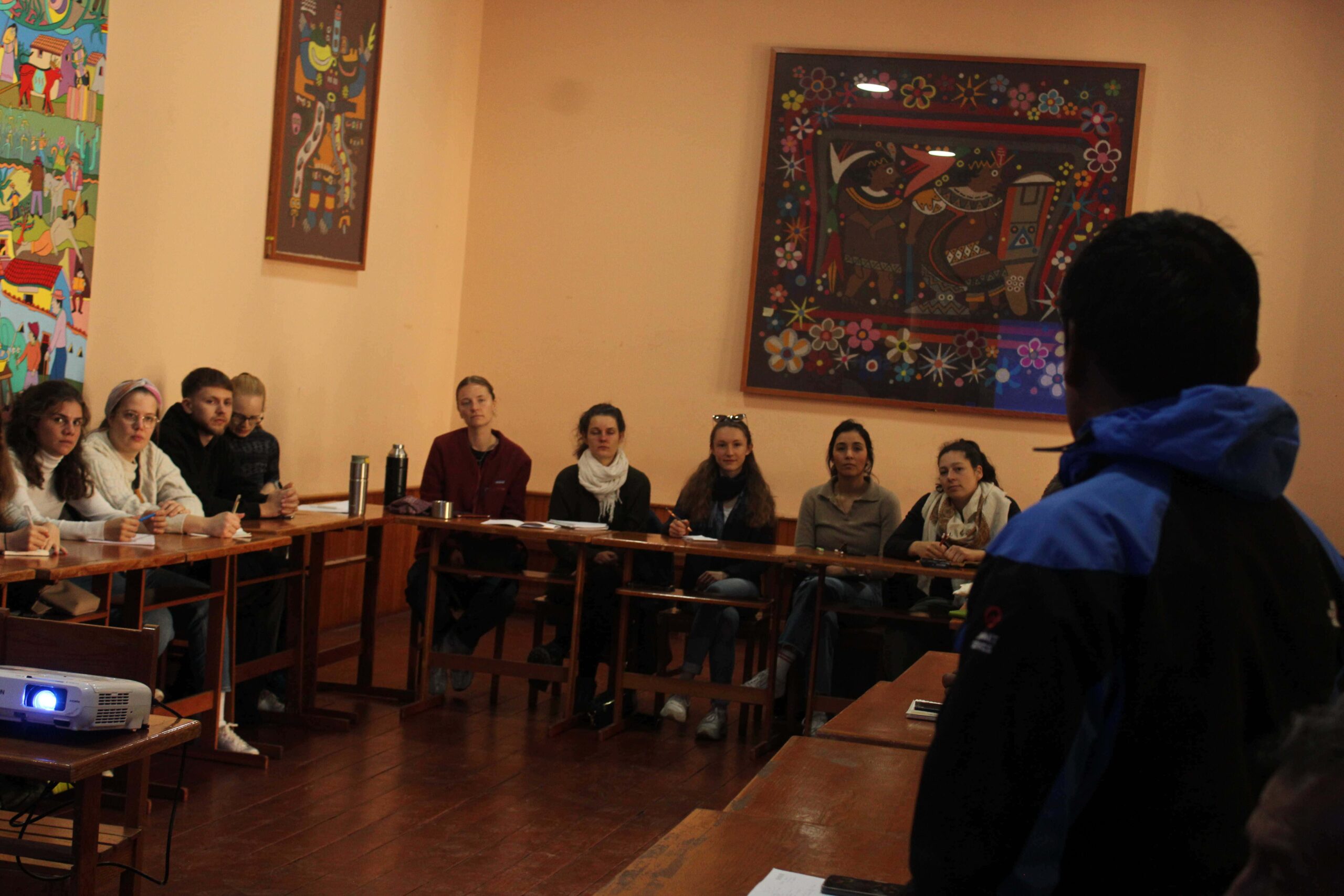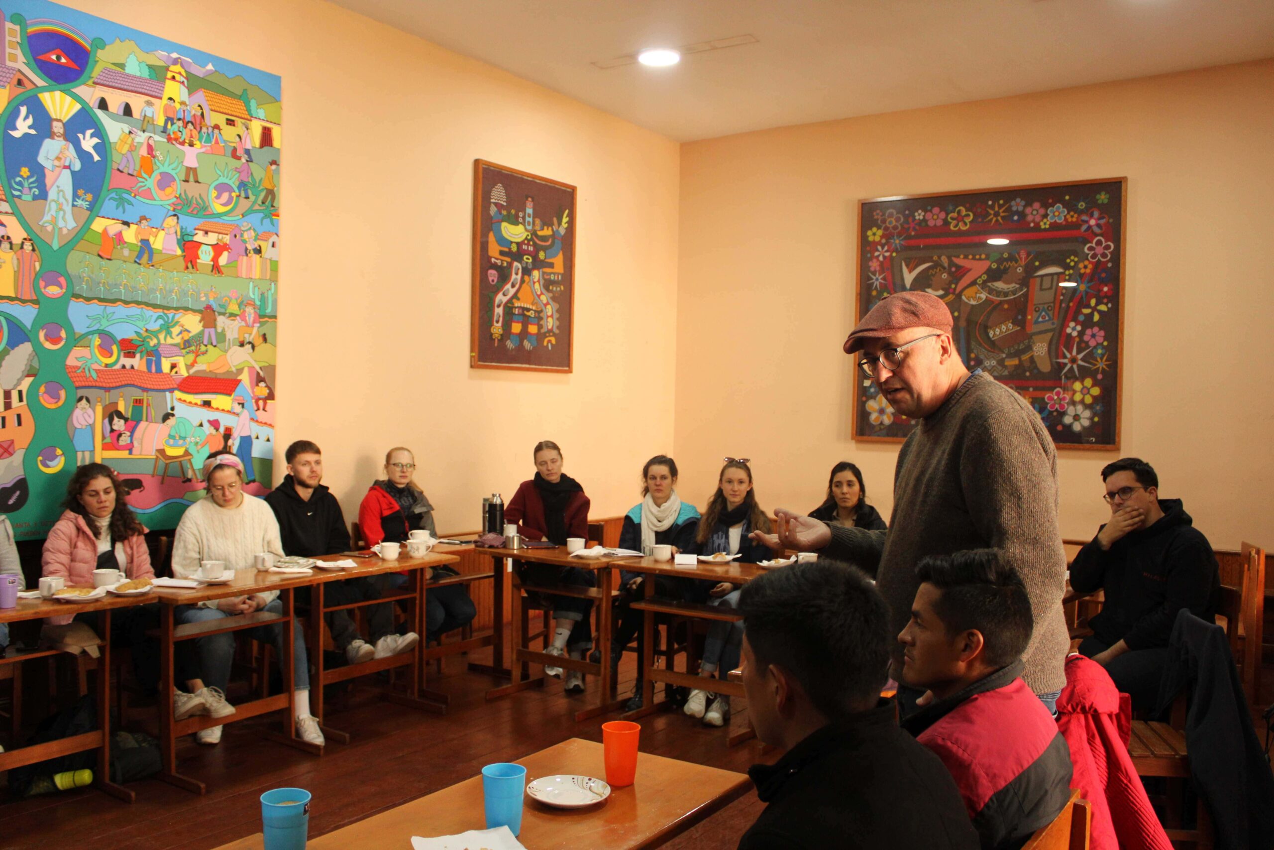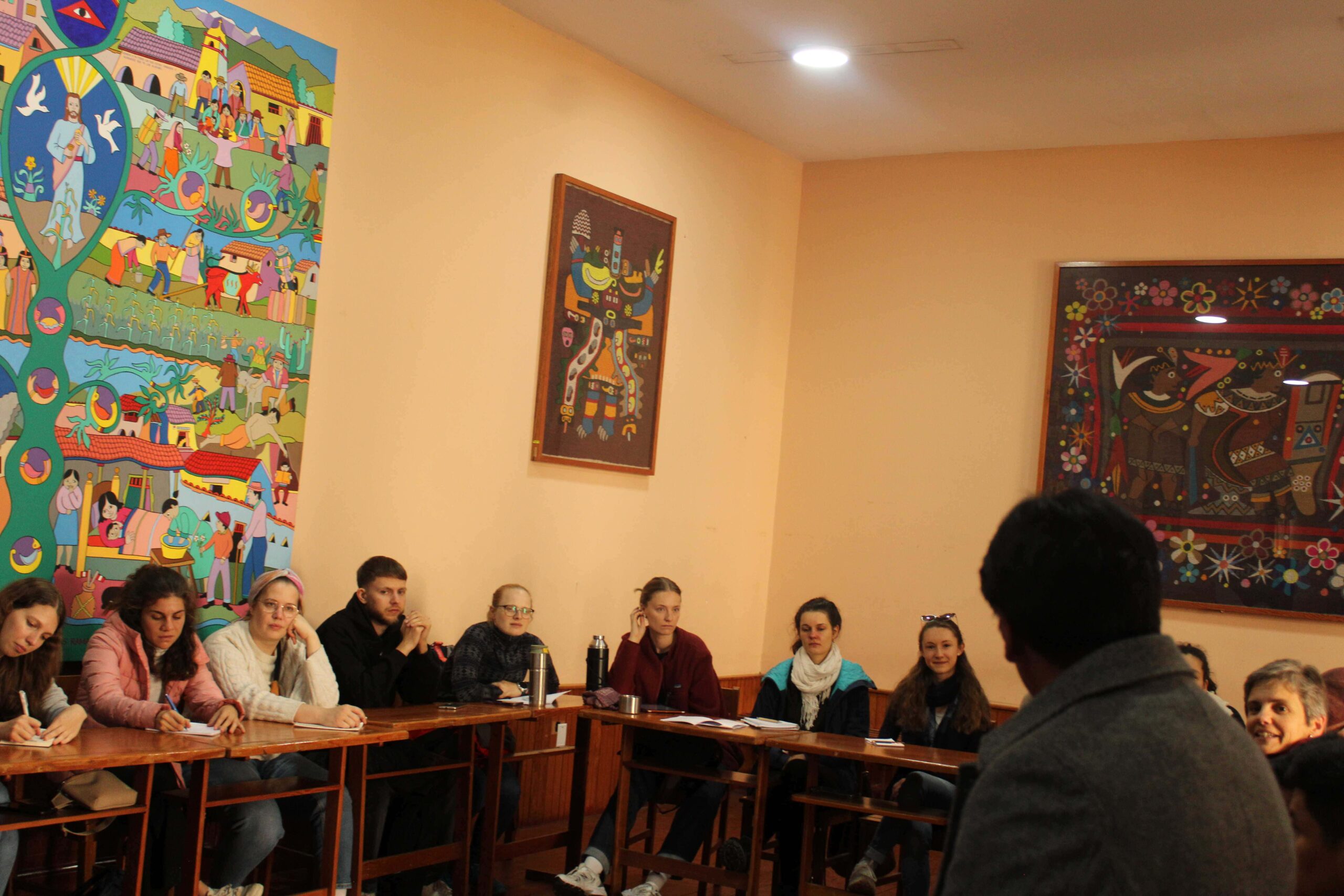 Durante los días 9 y 10 de agosto, el grupo visitó la comunidad de Cruz Pampa, en Sincos, Jauja. En esta comunidad, los estudiantes tuvieron la oportunidad de interactuar directamente con los comuneros, participando en sus actividades diarias, como la cosecha de papa entre otros. También realizaron una visita a los proyectos que PASSDIH está implementando en la comunidad, como la forestación de pinos y la construcción de reservorios artesanales de agua o qochas. Estas iniciativas son esfuerzos comunitarios para enfrentar las consecuencias de las concesiones mineras en sus territorios. El 10 de agosto, se llevó a cabo un diálogo con toda la comunidad, en el cual los comuneros expresaron sus necesidades e intereses para futuros trabajos conjuntos con el Arzobispado.